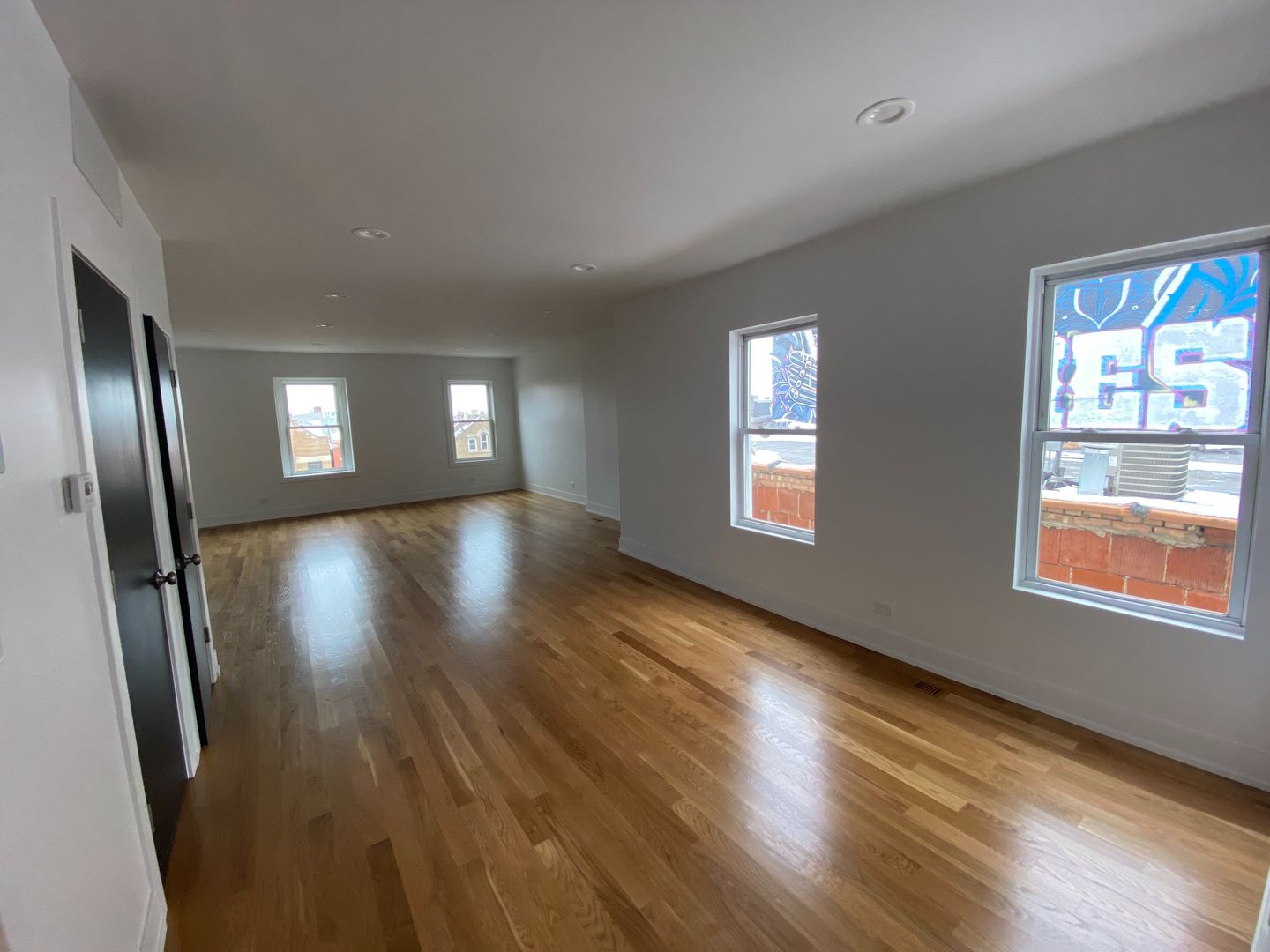 Rehabbed 1,500 square feet of bright space now available at the corner of 18th Street and Ashland, just steps from the Pink Line L Station. This unique and massive apartment offers 3 bedrooms/2 bathrooms with incredible living space, including an open kitchen/dining room with and separate, huge living room. The unit features brand new bathrooms, a brand new kitchen with quartz countertops and stainless steel appliances, an in-unit washer/dryer, and refinished original hardwood floors and central air conditioning. Enjoy living within walking distance to many of Pilsen's best restaurants, bars, coffee shops, markets, art galleries, and parks. The property is minutes from the UIC campus and the medical district and a quick bus/train ride from the Loop.