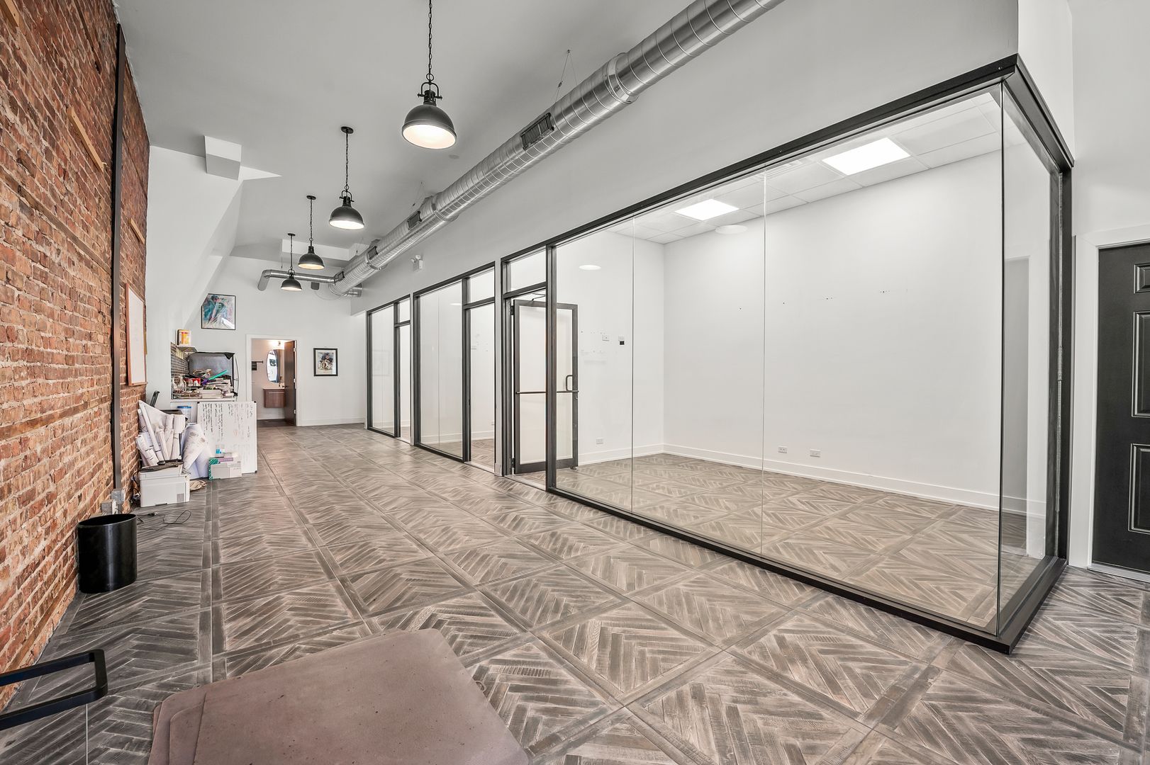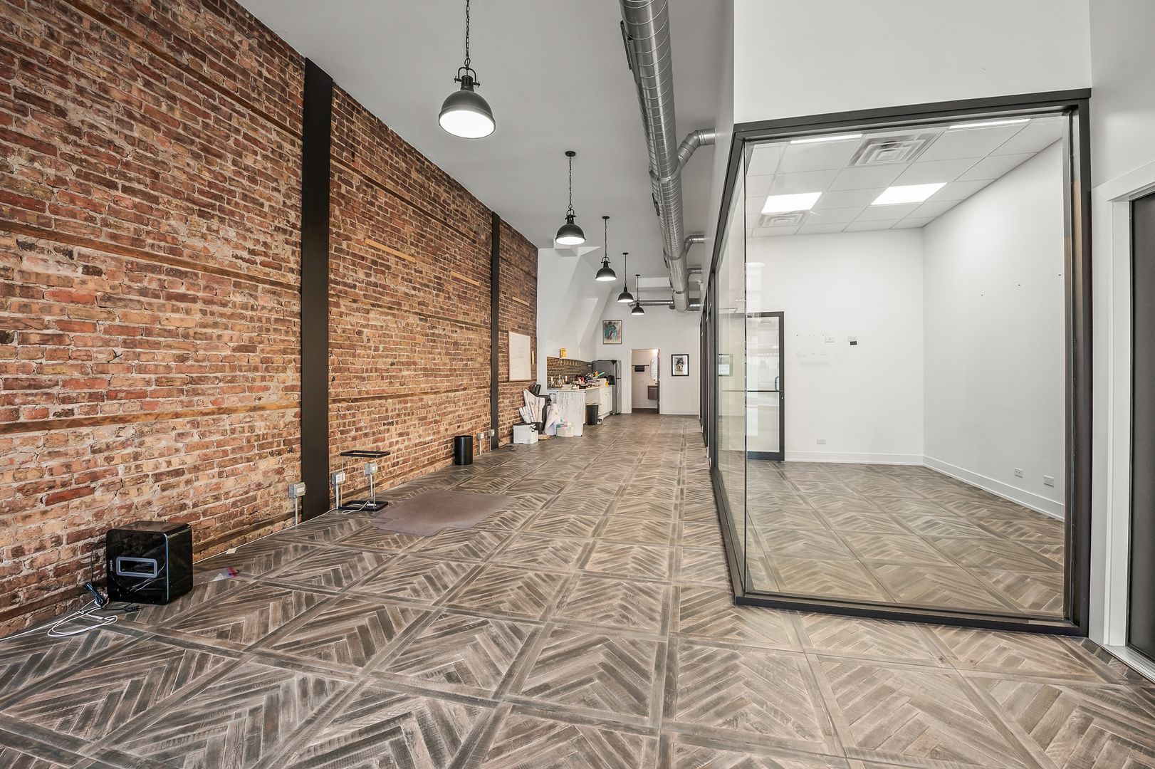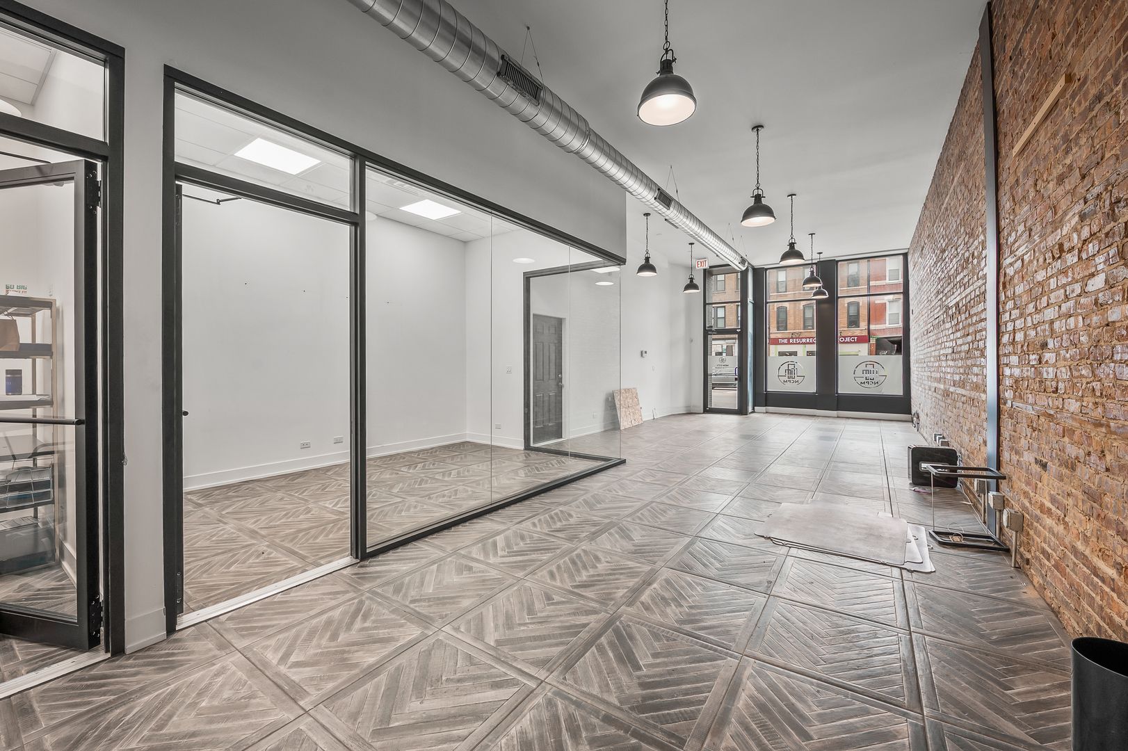Welcome to the bustling Pilsen neighborhood in Chicago, IL, where we have a prime office space available. This location is perfect for businesses seeking high visibility, as it is situated in a heavy traffic area. The space is equipped with an Amazon Hub, central AC, and central heating for your convenience. The interior features a beautiful buildout, including a kitchenette, a conference room, separate offices, and a reception area. There's also ample storage space and room for up to five desks. The location is well-connected, with easy access to the 18th Street Bus, Ashland Avenue Bus, and Red Line. Plus, it's conveniently close to expressways. This high-end office space is designed to meet your business needs while offering a comfortable and efficient working environment.